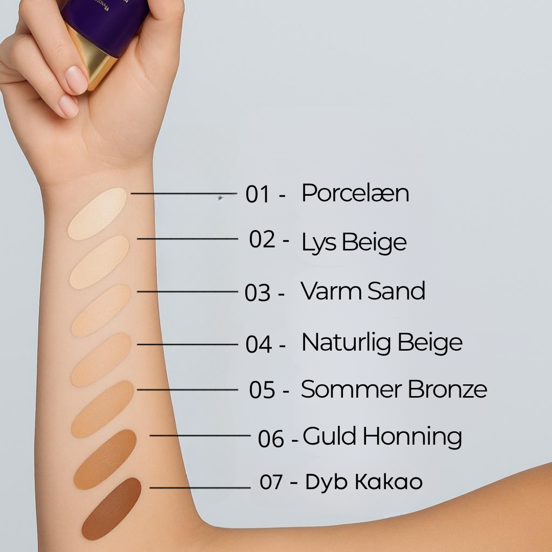 Vi tilbyder 7 naturlige nuancer, der passer til de fleste hudtoner og undertoner. Brug vores nuanceguide på produktsiden eller kontakt os for personlig vejledning.