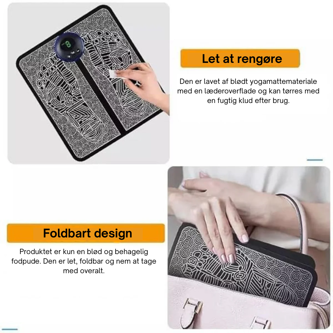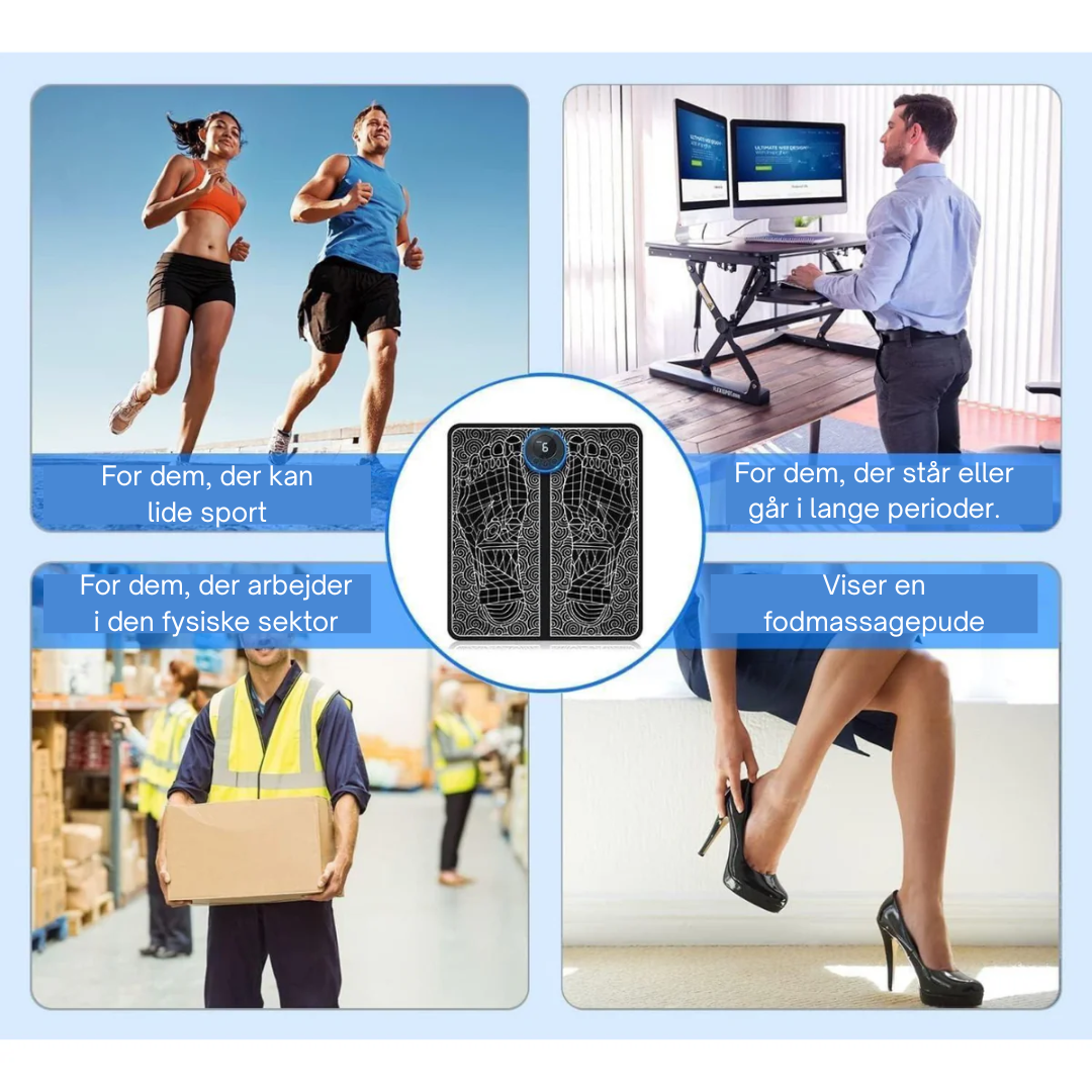Føles dine fødder ømme, hævede eller trætte efter en lang dag? Lider du af stivhed, ubehag eller dårlig blodcirkulation? FodMassage™ EMS Fodmassagepude er her for at hjælpe!
