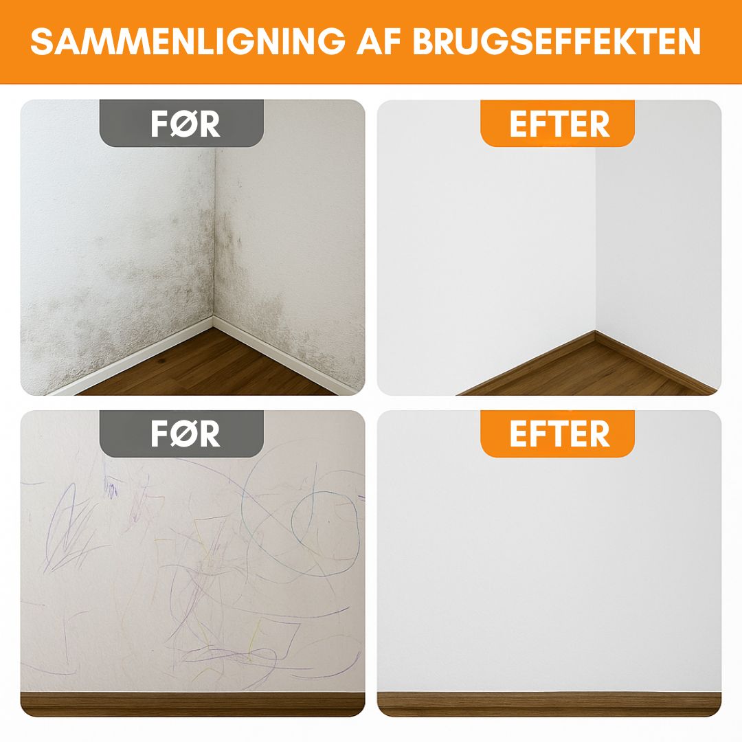 Perfekt til børnetegninger og spild – Fjern streger, ridser eller spontane “kunstværker” uden at skrubbe eller male hele væggen om.