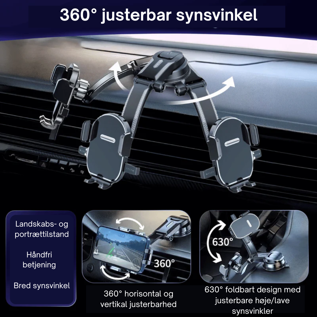 ✔ Placer & klik på 1 sek. – Slut med besvær, din telefon klemmes automatisk fast!