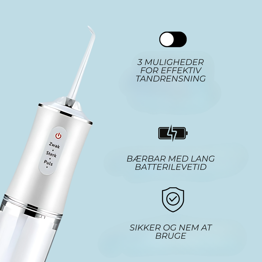 Træt af at kæmpe med tandtråd, bekymre dig om tandkødets sundhed eller slås med dårlig ånde? VandGlans™ er den tandlæge-godkendte løsning, der gør mundpleje både nem, effektiv og forfriskende. Designet til at rense dybt mellem tænderne, massere tandkødet blidt og efterlade munden frisk, er VandGlans™ den moderne måde at løfte din daglige mundhygiejne på.